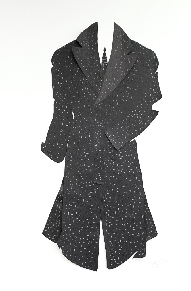 The thing was so big he thought he could wrap it around himself twice. Indeed, he was glad the belt had extra length to accommodate the bulk of crumpled fabric when he tied it at his waist. Like a giant robe, or a great donegal tweed blanket, the thing enveloped him, and carved out a new shape to be set against the silver clouds of winter. “If we get lost on the Great Plains, we could make that thing into a teepee,” she said, upon seeing him drape himself in the thing for this first time. It was true that it was oversized, and maybe even ostentatious, with its wide lapels and near-duster length, but it fit well over the layers he wore in winter as he slogged through his day in the city. A dressed up warming device, was how he thought of it, and he wore it often, even while he was looking for a salt and pepper cap to pair with it. When, after disrobing, he threw it onto a sofa, it made a substantial sound that he quite liked, as if the noise attested to his accomplishment of undergirding that woolen mantle all day. He often had to wear it over a suit but he secretly liked it best when he could wear it over thick, dark sweaters and jeans that were tucked into his black, 18 eye Dr. Martens. On those nights you could see him running through the alleys, sloshing through the snow, those long coat tails aloft behind him like some great speckled bird.
