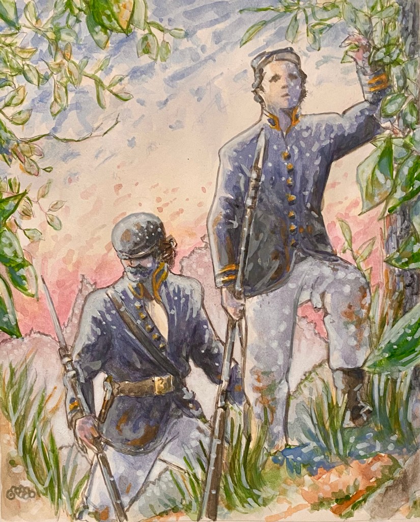 One might think this horror would have satisfied the human hunger for war, but the Union campaign proved to be only a rehearsal for World War I and much of the killing to come in the following century. The Union Pickets that first arrived on the scene, as above, were likely hardened by more than three years of war, but still could not have understood the template they were about to establish for conflicts to come. The bloodbath waiting for these pickets suggests that their ignorance might have been a blessing to them.
